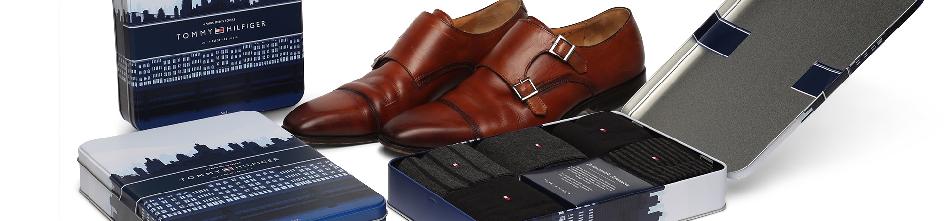 Blik voor sokken met bedrukte banderol voor identificatie.